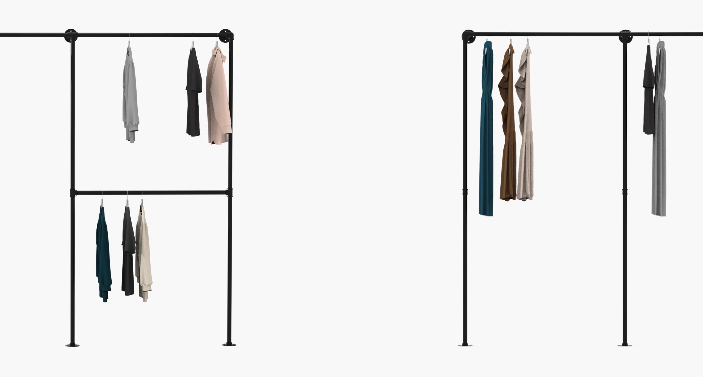Onze kledingrekken bieden een moeiteloze montage-ervaring. Dankzij ons schroefsysteem zijn onze producten binnen een handomdraai op te zetten.